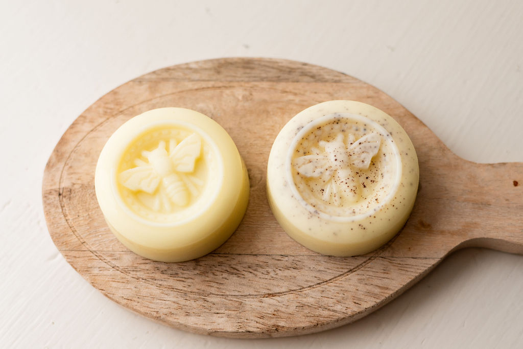 Tallow & Shea Butter Lotion Bar Ingredients: Beeswax, 100% Grass-fed Tallow, Raw Shea Butter, Organic Jojoba Oil, Organic Avocado Oil, Lavender Essential Oil OR Coffee & Vanilla Essential Oils OR Vanilla & Almond Essential Oils